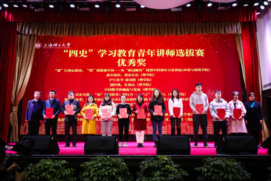 校级决赛分为“新中国篇”、“改革开放篇”和“新时代篇”三个篇章,8支青年讲师团队结合国家战略布局、上海城市发展、学校高水平大学建设的丰富实践经验,讲述了新时代青年教师坚定理想信念、践行初心使命的责任担当;讲述了中国特色社会主义的制度优势和最本质特征,科学回答了“中国共产党为什么‘能’、马克思主义为什么‘行’、中国特色社会主义为什么‘好’”的重大时代主题。经过激烈角逐,机械工程学院、医疗器械与食品学院、环境与建筑学院团队获得一等奖,管理学院、出版印刷与艺术设计学院、能源与动力工程学院团队获得二等奖,材料科学与工程学院、光电信息与计算机工程学院团队获得三等奖。现场还为参赛的22支青年讲师团队颁发优秀奖。