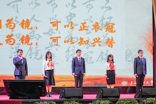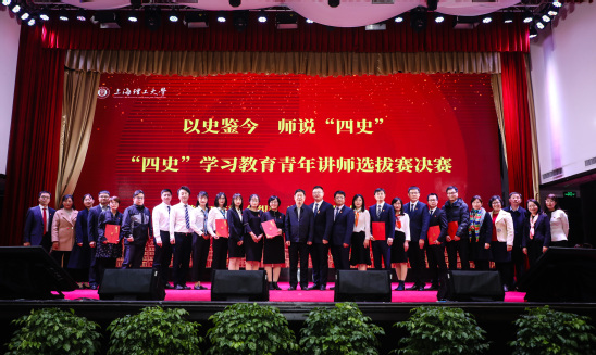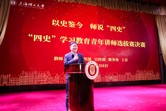 12月8日,学校“四史”学习教育青年讲师选拔赛决赛在军工路校区大礼堂举行。本次比赛由教师工作部、组织部、宣传部、教务处和工会共同举办。各学院高度重视、精心准备,来自8个学院的青年讲师团队从30支初赛团队中脱颖而出入选决赛。决赛邀请复旦大学、华东师范大学马克思主义学院负责人、学校相关职能部处领导担任评委,马克思主义学院副院长牛海教授、刘科教授担任主持,校党委常委、宣传部部长叶磊进行现场点评。校党委副书记孙跃东出席比赛并讲话。