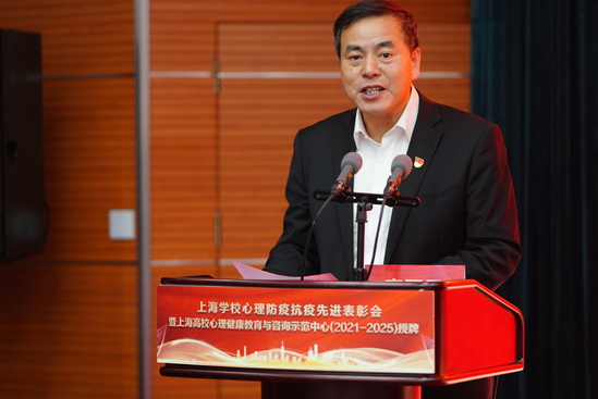 会议还同时为新一轮上海高校心理健康教育与咨询示范中心授牌。根据《上海市教育委员会关于开展新一轮上海高校心理健康教育与咨询示范中心申报工作的通知》(沪教委德〔2020〕11号)要求,经高校自主申报、专家评审、公示认定等程序,市教委命名复旦大学、同济大学、华东师范大学、华东理工大学、东华大学、上海理工大学、华东政法大学、上海中医药大学、上海师范大学、上海建桥学院等10所高校为新一轮上海高校心理健康教育与咨询示范中心(2021-2025年),上海交通大学、上海海洋大学、上海大学等3所高校为新一轮上海高校心理健康教育与咨询示范培育中心(2021-2025年),闵辉为10所高校心理示范中心授牌。