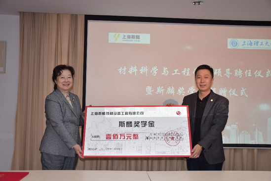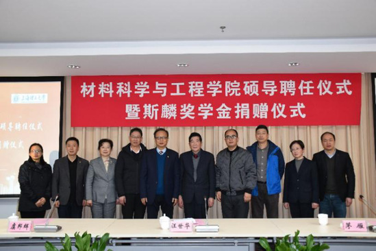 近日,材料科学与工程学院硕导聘任暨上海斯麟奖学金捐赠仪式在格致堂108会议室举行。上海斯麟特种设备工程有限公司董事长、总经理汪世华校友,常务副总经理虞邦辉,专家组专家茅雁、周雁,技术部部长朱欣娣及公司相关人员,上海理工大学副校长刘平,校友工作联络处处长、教育发展基金会秘书长孟宝全,材料学院书记周涛、副书记严瑾、副院长李生娟、副院长李伟及材料学院相关教师和部分研究生出席会议,会议由李伟主持。