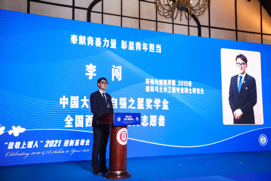 此次与会师生代表中,有防疫抗疫先进个人、教学名师、国家级科研人才、世界级运动会参赛选手、国家级大赛获奖者、西部志愿者等。他们身体力行,用奉献践行使命,用奋斗书写青春,彰显上理人勇攀高峰的激情和澎湃干事的豪气。教师代表、材料学院李伟教授,致力于让自己的科研“有用”,以技术攻关服务临床迫切需要,大幅提升应用效能;卫生科科长李长琳老师,春节期间坚守抗疫一线,在值班室连住九天九夜,全力守护师生健康。学生代表、环建学院的李闯同学,以无私奉献的优秀品质,在祖国最需要的地方绽放青春,尽自己所能帮助更多需要帮助的人;光电学院的丁思同同学,通过不懈奋斗品尝科研甜果,体会“青春挑战”的意义。师生代表动人讲述奋斗途中的心路历程,表达了对学校深深的感恩和对未来的美好期待。