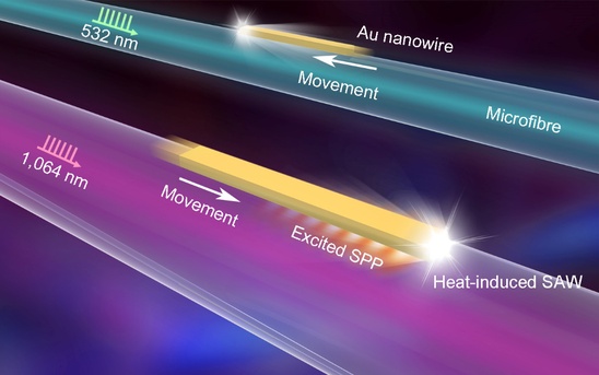 从而增强吸收光的热效应,并诱导产生表面声波驱动金纳米线沿二氧化硅微纳光纤运动。