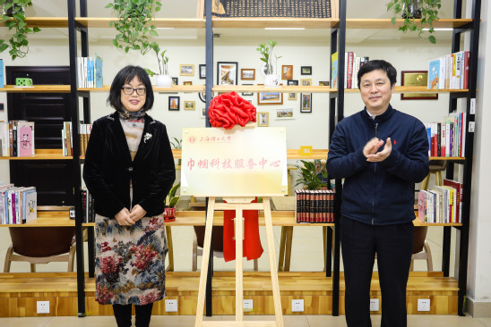 丁晓东和理学院张淑平教授为“巾帼科技服务中心”揭牌。2020年,张淑平凭借实力一举拿下了上海市教育系统唯一的上海市巾帼创新工作室。依托创新工作室,妇工委率领校女教授联谊会、优秀女青年联谊会、妇女研究中心的女教师们,以科技服务社会,以知识回报社会。