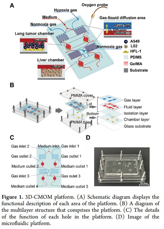 缺氧微环境广泛存在于实体肿瘤中,是肿瘤增殖、侵袭和转移的主要诱因之一,还能使癌细胞对许多传统抗癌药物产生抗药性。因此,缺氧是肿瘤微环境的重要特征,通过多器官芯片实现肿瘤微环境的缺氧精准模拟非常重要。