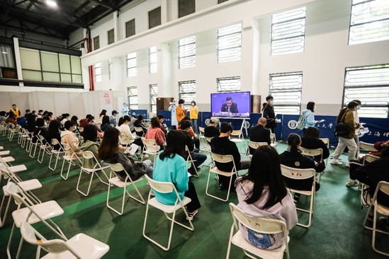 后勤管理处副处长邵荣老师介绍:“校内疫苗临时接种点每小时可容纳约400至500人,从早上8时到晚上8时全天候开展接种工作。4月6日已接种近4000人次,暂未收到接种后有不良反应的报告。我们希望通过短时间、大批量的接种,尽快完成学校的群体免疫。”