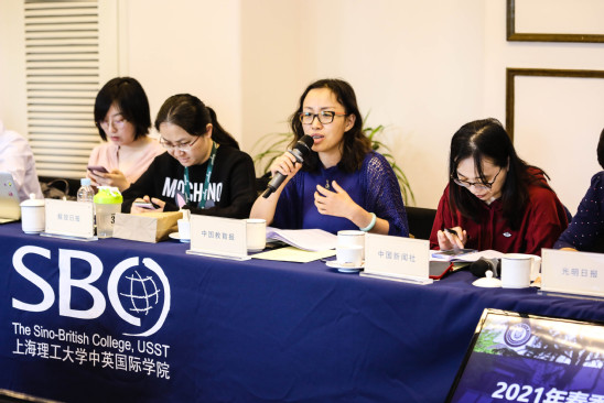 随后,与会记者与学校教师代表就我校在教师人才引进与培养评价体系、双创教育、计算机课程改革、体育和美育等方面情况进行了交流探讨。