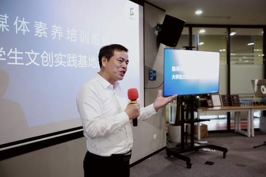 盛春在讲话中对校企双方筹办培训班的师生表达了衷心感谢,同时对参与培训班的学员提出了期望:一是要充分运用好校企合作的优质平台,培训结束也是新一段旅程的开始,要抓住机会,主动与行业导师、不同专业的同学们交流学习;二是要珍惜企业给予的实习实践机会,将自身所学主动对接行业发展需求,在实践中提升各项本领,争取发展机会;三是要葆有初心,创作出更有时代意义、引领青年成长成才的创新型作品,成为弘扬网络正能量的中坚力量。