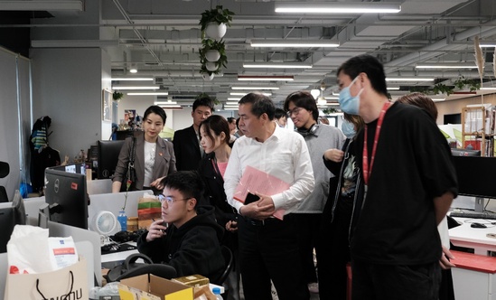 仪式开始前,在盛趣游戏公司工作人员的引导下,上理师生们依次参观了盛趣游戏公司的历史发展和荣誉成就墙、游戏制作全流程和企业员工的办公环境。
