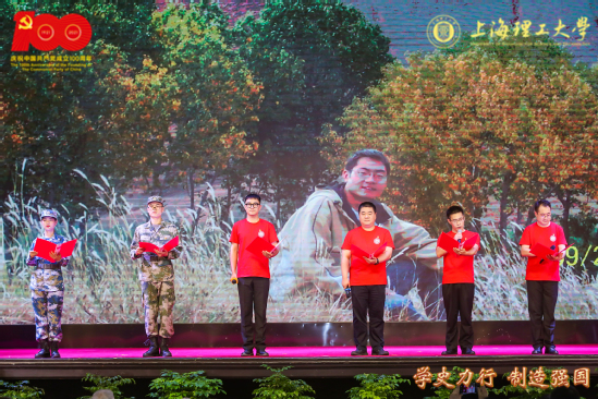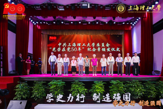 《学史篇》阐述了在党史学习教育中坚定理想信念,高扬奋斗精神的重要意义。上海理工大学党委书记吴坚勇在《信仰力量》篇章中围绕“学史增信”展开解读,激励全体党员师生通过党史学习厚植马克思主义信仰,增强中国特色社会主义信念,坚定实现中华民族伟大复兴的信心,在学史增信中掌握历史主动,坚守育人初心,勇担制造强国使命。沪江学院教师郭晔丹、王聪聪通过《诗画长征》的精彩讲述,向师生展现了红军战士气吞山河的革命壮举与共产党人用生命和热血铸就的长征精神。随后的《百岁初心》环节,以视频形式展现了我校离休老干部、百岁新四军老战士季黎平同志的殷切期许,展现了她对“听党的话,永远跟党走”这一铮铮誓言的砥砺践行。学校杰出校友、中国东方电气集团公司原党组书记、董事长何木云则在《使命践行》中传达了他“到祖国最需要的地方,做祖国最需要的事业”的奋斗感悟。一代又一代上理人在接续奋斗中与中国共产党共成长,用奋斗践行入党誓言,用奉献擦亮人生底色。《光辉闪耀》环节通过“光荣在党50年”纪念章颁发仪式与市委、市教卫工作党委“两优一先”获得者和单位荣誉表彰仪式,向上理工百十年历程中的砥砺奋进者致以崇高敬意。