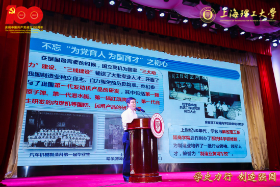 站在建党100周年的新起点新征程上,全体党员需坚持学史力行,不忘来时奋斗路,走好前行奋进路。6月23日,“新时代.中国说‘学史力行 制造强国’——上海市教卫工作党委第三季‘伟大工程’系列示范党课暨上海理工大学庆祝中国共产党成立100周年主题活动”在学校大礼堂举行。