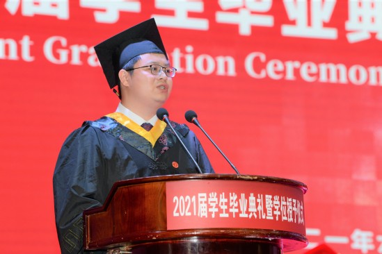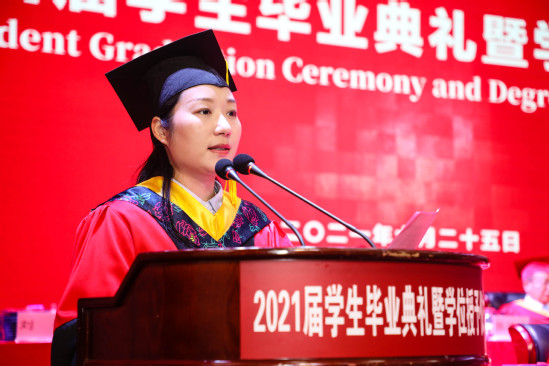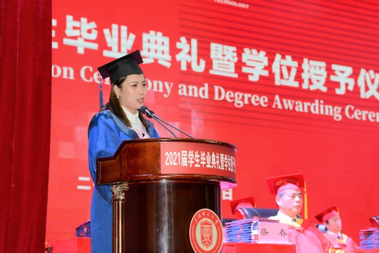 校园的每个角落,都留下了上理学子奋力拼搏的足迹,毕业生代表与大家分享关于他们的成长故事和对青春的美好回忆。第二十二届校研究生会主席、管理学院硕士毕业生哈布日上台发言,她说,站在道路的分岔口,无论作何选择,唯有坚定不移地保持初心,热烈且真挚地追求自己所求,向着自己的梦想进发方能彰显我校学子本色。机械工程学院本科毕业生李屹,向我们分享了四年来与母校的共同成长,并在毕业之际再次向母校的老师和同学们表达出感恩之情。光电信息与计算机工程学院彭滟教授作为教师代表发言,她先是肯定同学们这些年在上理努力学习、拓展自我、奋斗拼搏、追求卓越、挥洒汗水,而后提出对毕业学子的两个期望:自强不息、懂得感恩。最后,上海地江集团董事长、1997级环境与建筑学院校友林建华为学弟学妹们送上了毕业赠言,在向大家分享创业经验的同时,勉励母校的学弟学妹们在成长的道路上要学会吃亏、勇于担当,要初心不改、坚定信心,要心怀感恩、回馈社会。在创造自己精彩人生的同时,不要忘了父母的养育之恩、母校的培育之恩、他人的知遇之恩,并用实际行动来践行自己的情怀。