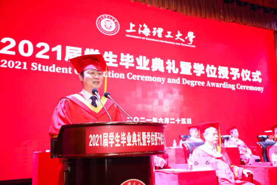 毕业典礼在雄壮的国歌声中拉开帷幕。在上理求学的时光里,一位位学子勤奋学习、刻苦钻研、锐意进取,取得了许多闪光的成绩,为自己的大学生涯交上了一份满意的答卷,为学校、也为自己赢得了荣誉。吴坚勇宣读《关于表彰2021年市优秀毕业生、校优秀毕业生的决定》,盛春宣读《上海理工大学关于授予2021届毕业研究生学位的决定》,张华宣读《上海理工大学关于授予2021届本科毕业生学位的决定》。