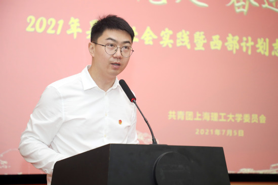 7月5日上午,学校2021年暑期社会实践暨西部计划志愿者出征仪式在综合楼报告厅举行。校党委副书记、副校长盛春,党委研究生工作部部长彭宗祥,校团委书记刘威,党委组织部副部长谢锡浩,党委宣传部副部长孙立,学工部副部长岳敏楠,各二级学院学工负责人、各学院团委书记、师生代表参加仪式,出征仪式由校团委副书记杨阳主持。