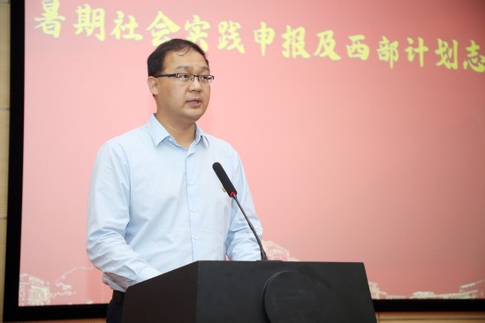 刘威介绍了今年暑期社会实践项目申报情况和西部志愿者的录取情况,向各实践队伍发出倡议,要求同学们在观察和实践中学党史、强信念、跟党走,在确保安全的前提下完成各项实践活动。