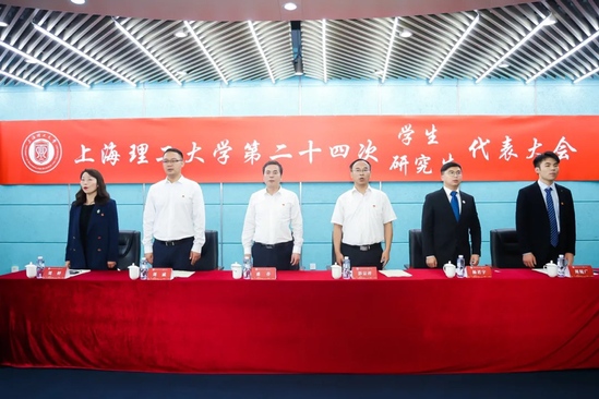 当日下午,在庄严的国歌声中上海理工大学第二十四次学生和研究生代表大会第一次全体会议正式开幕。校党委副书记、副校长盛春,研究生工作部部长彭宗祥,团委书记刘威,上海市学生联合会驻会执行主席杨君宇,校学生会、研究生会秘书长刘婷,研究生会指导老师周锟广出席会议。来自各学院代表团的学生代表,上海市各兄弟院校学生会主席团成员参加会议。