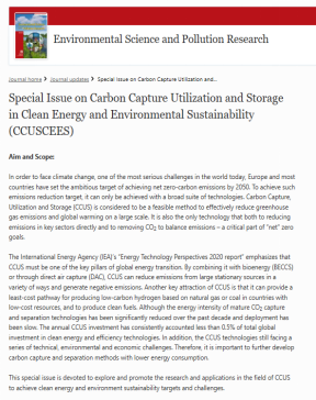 近期,环建学院环境系副教授史焕聪出任SCI期刊《环境科学与污染物研究》(Environmental Science and Pollution Research)的《碳中和专刊》(Special Issue on Carbon Capture Utilization and Storage)客座主编(Guest Editor)。