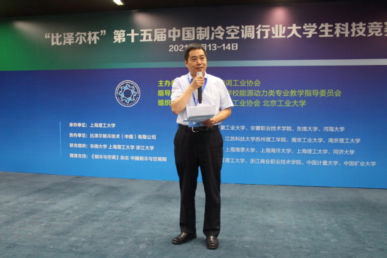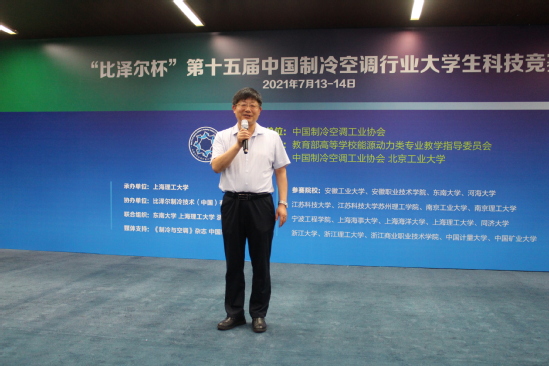 7月13日至14日,第十五届中国制冷空调行业大学生科技竞赛决赛在我校举办,本次竞赛由中国制冷空调工业协会与教育部高等学校能源动力类专业教学指导委员会联合主办。我校副校长张华,中国制冷空调工业协会副理事长兼秘书长张朝晖,清华大学教授石文星、北京工业大学教授马国远、上海交通大学教授谷波,比泽尔制冷技术(中国)有限公司销售总监逄增强、应用技术高级经理赵李曼、渠道及公共关系经理腾博,我校能动学院党委书记焦雪勐、人事处副处长武卫东教授以及各参赛队伍参加了开幕式和相关竞赛活动。本届竞赛以“平疫兼顾的低碳制冷空调技术”为主题,来自上海、江苏、浙江、安徽等地区本科生和研究生共计52支队伍参加初赛,经过选拔和激烈角逐,最终,来自浙江大学、东南大学、上海理工大学、同济大学、南京理工大学等18所院校的19支本科生代表队、8支研究生代表队进入总决赛。
