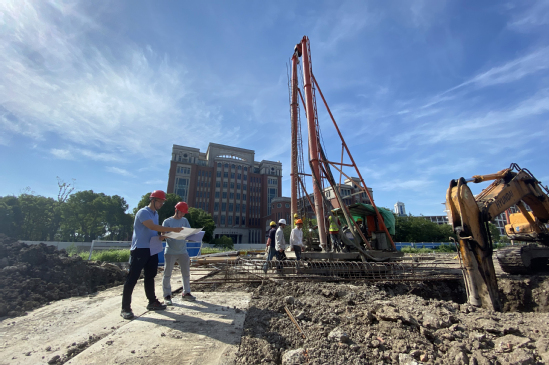 “虽然现在出行有些不便,但是想想两年后投入使用的新教学大楼和全年开放的恒温游泳池,我还是非常期待的!”学生刘邓云飞对记者讲道。这个暑期,为了让校园更加美丽、更加现代,基建处一直坚守在施工现场一线,高温酷暑下,他们积极推进军工路516号校区改扩建工程、军工路1100号校区改扩建工程及海安路地下通道建设。