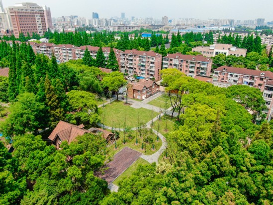 学校因地制宜地将“渗、滞、蓄、净、用、排”巧妙落实在“海绵校园”建设中。沪江国际文化园北欧大草坪下面有一个地下蓄水池,从一栋栋小洋楼屋基引出的排水管网通向这里,把雨水蓄积起来,平时校园道路清洗等非饮用生活用水,皆可以从蓄水池中提取,节约自来水。存蓄的雨水还可以引流到学校的小池塘,有效扩大校园水域面积,让上理校园成为名副其实的“节水校园”。通过“海绵校园”建设,不仅可以有效应对暴雨灾害对师生安全、学校设施的影响,降低面源污染,提升景观环境,还可以使师生生活更安心、更省心、更舒心。