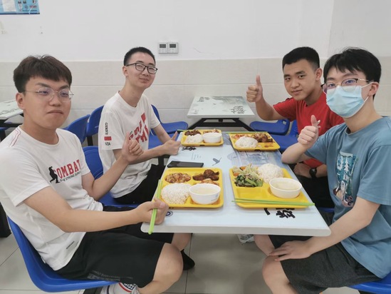 虾仁炒蛋、红烧肉、香酥鸭、川香牛柳……在1100校区第四食堂,黄色的餐盘上摆满了各式口味的菜品,包含两荤两素A/B套餐供新同学们随意挑选,大一新生李心儿一边品尝着大学第一餐,一边和室友畅聊着开学感想。“之前就在学校官微上看过上理美食的推文,今天终于品尝到啦,期待和大家打卡学校的更多食堂,吃饱了不想家嘛。”