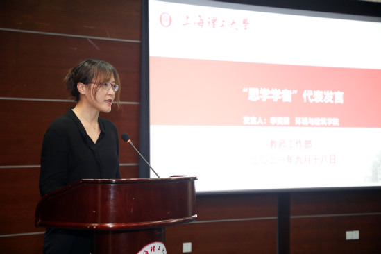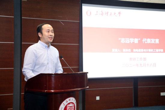 最后,吴坚勇发表讲话。他对青年教师加入上理大家庭表示欢迎,并提出三点希望。一是要聚焦立德树人根本任务,将“徳”摆在第一位,学为人师,行为世范。教师既是一种职业,更是一种公共事业,好老师应该不断提高道德修养,提升人格品质,并把正确的道德观传授给学生,引导学生扣好人生第一粒扣子。二是要终身学习,成为所在学科领域的大师。大学要有大师。作为大学教师要胸怀“两个大局”,终身学习,追求卓越,做好科研教学的平衡。三是要赓续百年初心,爱校荣校,将个人职业生涯成长与学校发展有机结合,做学校事业发展的攀登者、参与者、践行者。