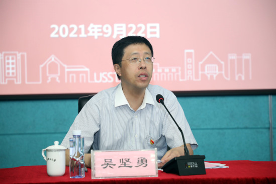 吴坚勇在会上强调,要继续深入学习贯彻习近平总书记在庆祝中国共产党成立100周年大会上的重要讲话精神,持续巩固党史学习教育阶段性成果,扎实抓好当前和今后一个阶段党史学习教育各项工作,确保取得实实在在成效。一是以更高的站位,学深悟透习近平总书记“七一”重要讲话精神。要高质量开展专题学习、培训、宣讲、实践和巡回指导;要深入研究阐释弘扬伟大建党精神,加强伟大建党精神的理论研究、成果转化、学术交流、信息共享;要深入贯彻习近平总书记关于教育卫生事业的重要论述,用创新理论指导工作实践。二是以更鲜活的方式,厚植爱党、爱国、爱社会主义的情感。要抓好大学生党史学习教育宣讲团、“新时代•中国说”青年教师和学生讲师等关键群体宣讲;要抓好思政课、习近平新时代中国特色社会主义思想概论、“中国系列”智慧中国课程等关键课程融入;同时抓好关键节点宣传、关键场景寻访、关键典型选树。三是以更扎实的举措,推进办实事、开新局取得新进展新成效。要压实责任、挂账销号,推进“我为群众办实事”重点项目尽快落实落地;要聚焦发展、推动工作,通过高质量党建工作引领高水平大学建设;要进一步健全工作机制、加强督促整改落实、强化氛围营造。