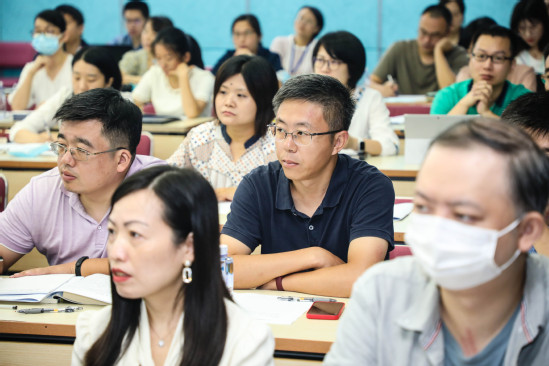 我校马克思主义学院副院长牛海做了《学习贯彻习近平总书记“七一”重要讲话精神 凝心聚力形成高水平大学建设强大合力》的主题讲座,阐释了习近平总书记“七一”重要讲话的精神实质和核心要义,解读了伟大建党精神的丰富内涵,引导参培教师树立正确的党史观,提升党性修养,为办好让人民满意的教育而努力。科技发展研究院院长张大伟、研究生院副院长彭宗祥、本科生院副院长章国庆分别以《对接需求 谋划布局 奋力攀登创新高峰》《新时代研究生导师的责任与使命》《立德树人 润物无声 培养具有上海理工大学特色的一流大学生》为题介绍了学校科技发展、研究生教育、本科教育等方面的发展脉络、长远规划及近期工作重点,为参培人员的发展提供了方向性指南和政策性建议。之后,围绕《凝心聚力 奋斗进取 推动特色显著的一流理工科大学建设》进行了分组讨论和交流发言。大家表示,本次培训获益匪浅,进一步强化了自身“爱校荣校”的主人翁意识和“强校有我”的责任感与使命感。