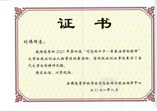 近日,2021年全国第四届“闪亮的日子——青春该有的模样”大学生就业创业人物公布,我校环境与建筑学院博士生刘伟的创业事迹入选大学生就业创业典型事迹,获得全国表彰,这是我校学生首次入选就业创业典型人物。