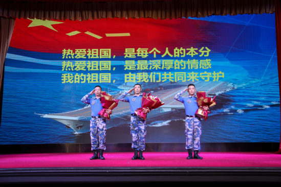 在活动第二篇章,逐梦深蓝讲师团成员为同学们带来一堂深刻又生动的党史学习和爱国主义教育课,邹海涛、石相成、张楠三位退役海军军官结合海上联合演习、亚丁湾护航等经历,讲述中国军人的职责和使命,激励大学生们将爱国情、强国志、报国行融入青春血脉。