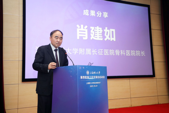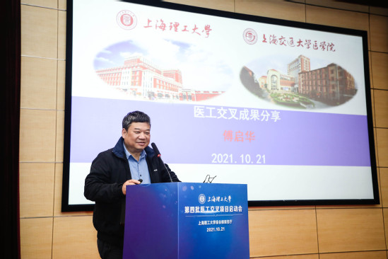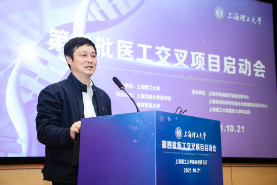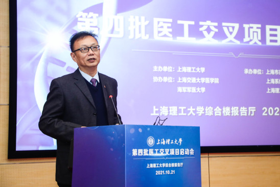 10月21日,第四批医工交叉项目启动会在我校综合楼报告厅举行。中国科学院院士陈国强,中国工程院院士李兆申,上海市经信委生物医药产业处处长李甲,上海交通大学医学院科研处处长傅启华,海军军医大学附属长征医院骨科医院院长肖建如等嘉宾应邀出席会议,校长丁晓东、副校长刘平,各职能部处负责人,医工交叉项目教师、医生及学生等300余人参加会议。会议由刘平主持。