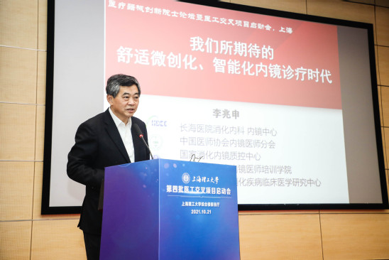 随后,李兆申院士作了以“舒适微创化、智能化内镜诊疗”为主题的报告,从胶囊内镜、超声内镜等方面详细介绍了与我校合作开展医工交叉项目取得的成绩。傅启华、肖建如、我校健康科学与工程学院副院长崔海坡等分别就医工交叉成果创新、合作项目成果转化、医疗器械注册上市全链条信息等与在座师生进行交流。我校研究生院副院长崔国民和跨学科创新研究院办公室主任沈悦分别对我校卓越医工人才培养及医工交叉项目全流程管理等方面进行详细介绍。