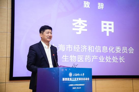 李甲指出,生物医药是上海战略性新兴产业的重要支柱,上海已经呈现出世界级生物医药产业的集聚趋势。他对上海理工大学与交大医学院、海军军医大学等强强联合开展的医工交叉项目及所取得的成果表示认可。他希望,通过医工交叉项目,使医疗器械领域行业需求与高校科学技术进行高效对接,产出更多的高质量成果,并在上海市乃至全国临床应用中进行实际转化,为上海的生物医药产业发展添砖加瓦。
