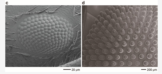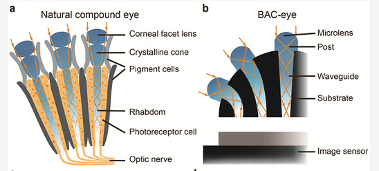 距今五亿年前的寒武纪,部分生物已经能够通过简单结构的复眼洞察周围环境。随着生物的进化,节肢动物的复眼结构得以不断完善。自然界中生物复眼拥有宽广的视野,以及深度感知的能力,可以通过极大视场角、极小像差,以全景模式观察周边的事物。由于复眼的显著优势及特点,科研工作者们纷纷提出了多种仿生复眼的方案。然而,复眼的生理结构复杂,难以被简单仿制;复眼的三维立体结构无法直接匹配传统二维图像传感器,应用上也存在极大的难度。