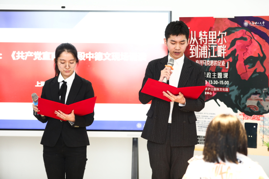 以学生展示环节为引子,在这堂精心打造的“追寻马克思的足迹:从特里尔到浦江畔”课程思政示范课上,主讲人既有校外专家学者、市委党校教师,也有校内专任教师、辅导员,共同为同学们带来一顿丰富的精神大餐。
