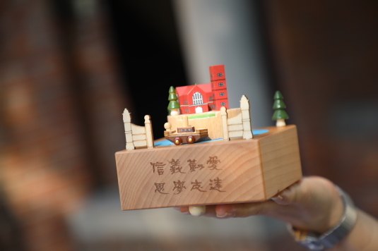 校园文创产品寄托着校友对母校的情感。绘有校园四季风景的明信片、镂刻着学校建筑剪影的纸雕灯……在“上尚至礼,汇创沪江”文创作品展上,凝聚着师生智慧的文创产品各具创意、制作精美,吸引了许多校友驻足欣赏。“犹记红塔”八音盒是迎接115周年校庆的“新品”,上面树立着上理校门、大礼堂等建筑的缩小版,一艘小船围绕着它缓缓转动,呼应着“每一艘开往上海的轮船都必须在这所大学的视线内经过”,汽笛声声,为这座百年学府增添了一份独有的韵味。