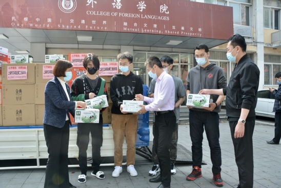 得知这一消息,全国“两会”闭幕后从北京返沪的全国政协常委、民建中央副主席、上海市政协副主席、民建上海市委主委、上海市中华职业教育社主任、上海公共外交研究院理事会理事长周汉民非常牵挂,在他的亲自关心下,民建市委会员企业、上海市中华职业教育社社属学校群策群力、筹措物资支持我校。3月15日,外语学院院长、上海公共外交研究院常务副院长刘芹相继接到上述企业和学校负责人电话,接洽物资采购或加班制作事宜。校友工作联络处也主动与后勤管理处和外语学院对接,商议捐赠物资发放事宜。