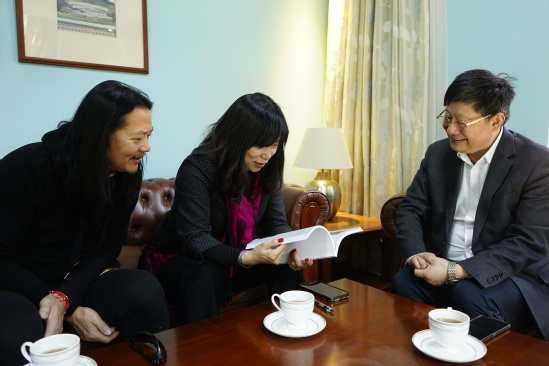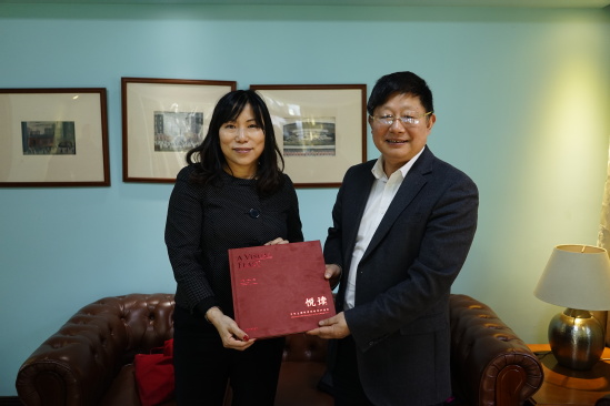 12月20日上午,沪江大学时期1947级校友胡思旅和谢榕津之女、纽约作家胡桃女士及其爱人、画家石村先生到访档案馆,副校长张华和档案馆相关人员热情接待。