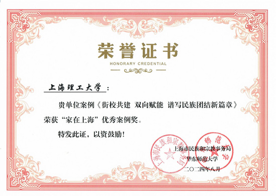 8月29日至30日,上海召开城市治理共同体与各民族互嵌共融研讨会,深入学习贯彻党的二十届三中全会精神,聚焦铸牢中华民族共同体意识主线,探讨推进新时代党的民族工作高质量发展的新经验新举措,促进各民族广泛交往交流交融。会上举行了“家在上海”优秀案例颁奖仪式,我校报送的案例《街校共建 双向赋能 谱写民族团结新篇章》获“家在上海”优秀案例奖。