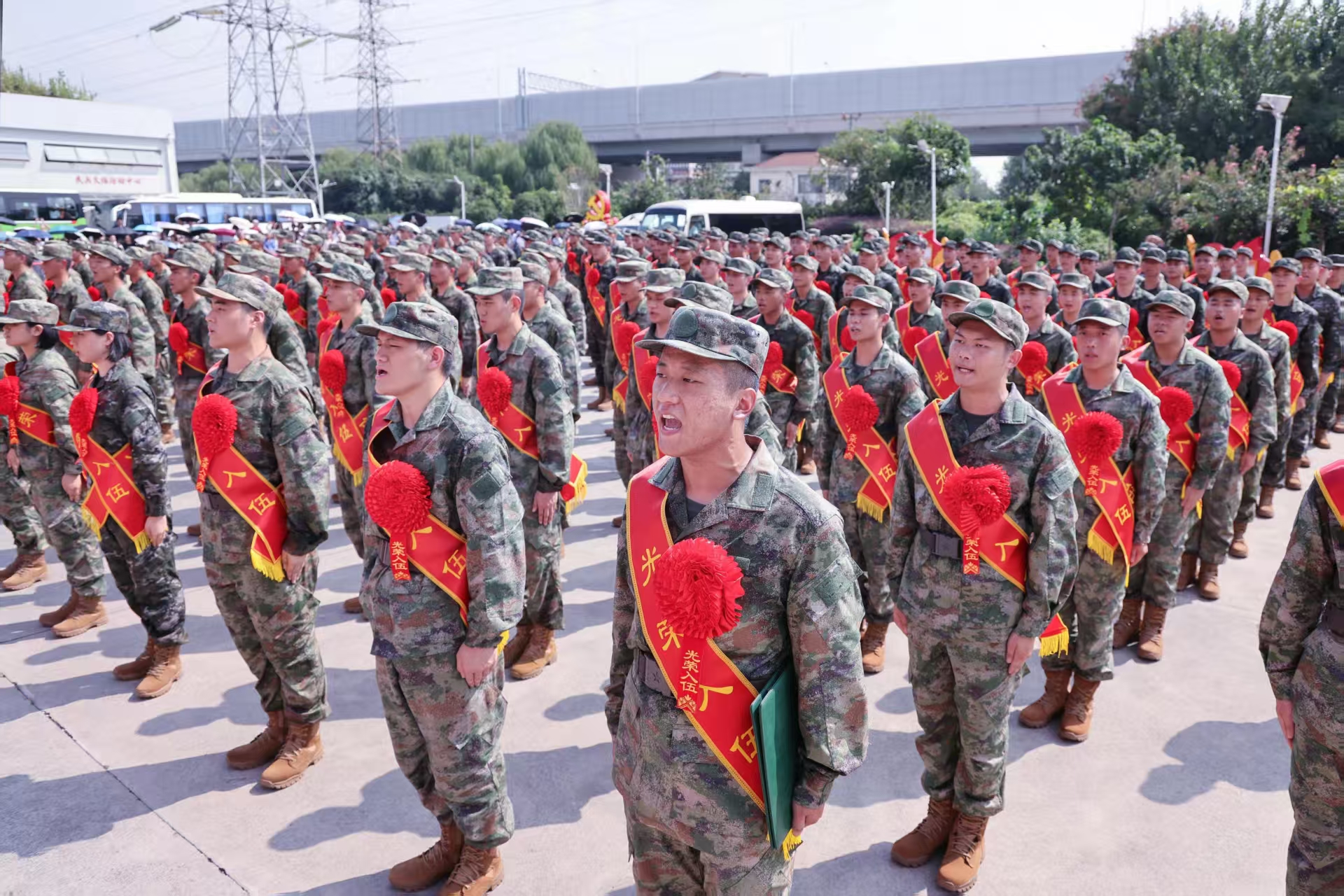 来自上海电力大学的二次入伍新兵代表曹威,则在发言中表达了自己再次选择从军报国的坚毅勇气和无悔决心,“我将以更昂扬的斗志、更过硬的作风,快速适应新岗位、练就新本领,用热血续写忠诚,用行动践行使命,为捍卫国家主权、安全、发展利益贡献自己的全部力量!”