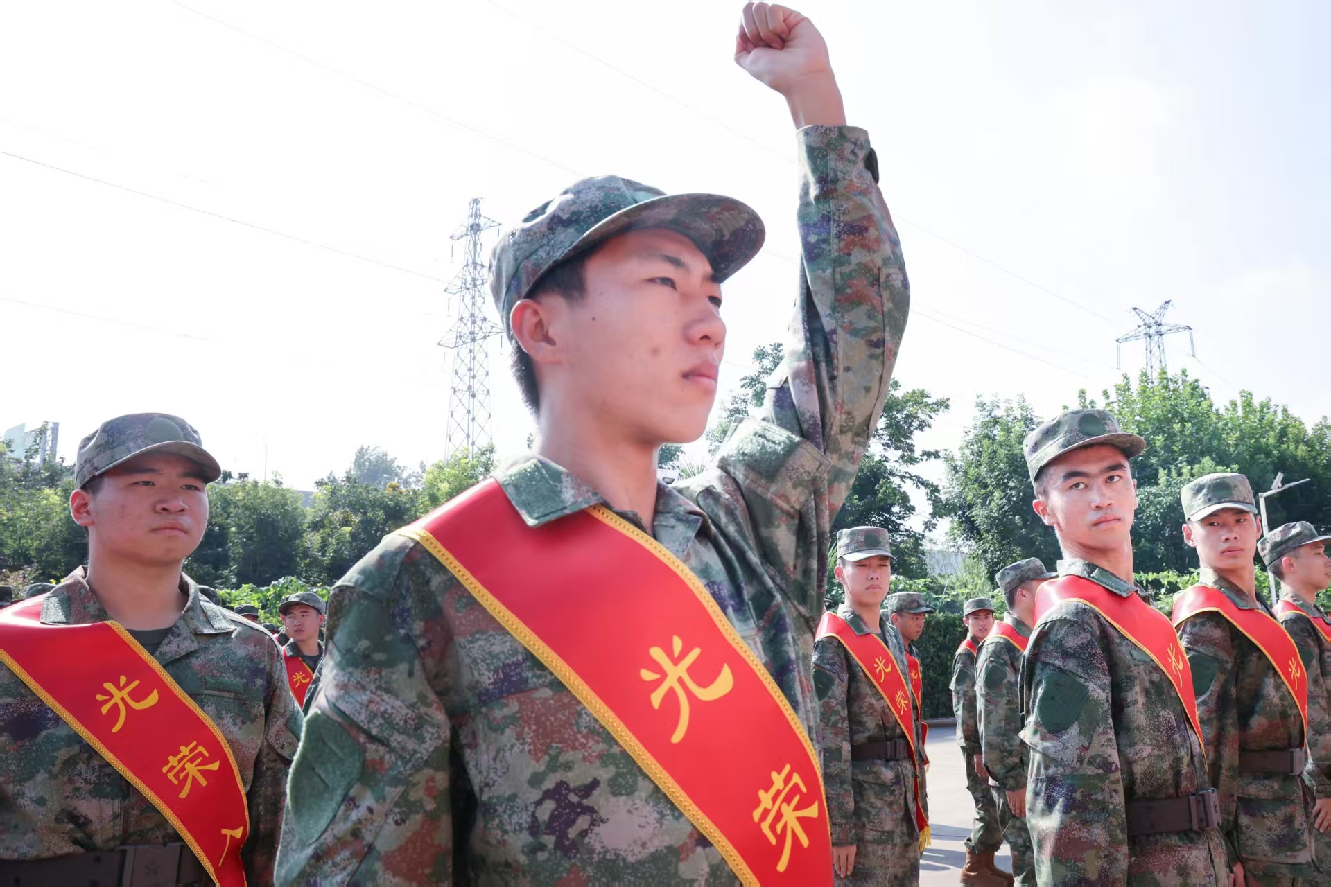在《中国人民解放军军歌》慷慨激昂的歌声中,身着戎装、胸戴红花的热血青年们精神抖擞、意气风发,怀着对军营生活的向往和对保家卫国的坚定信念,开启崭新的军旅生涯。