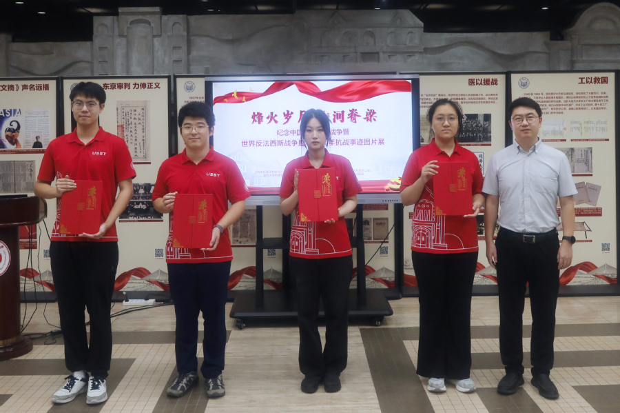 开幕式上,蔡永莲、彭绍钧、杨阳分别为荣获“金牌服务奖”“金牌讲解员”“优秀讲解员”的讲解员颁奖,肯定了他们在红色文化传播中的贡献,同时激励更多师生参与文博场馆讲解工作。杨浦区委党史研究室(区方志办)主任黄伟一向各高校代表赠书,为高校抗战历史研究与党史学习教育提供资料支持。杨浦区档案局(馆)长史英俊向上海理工大学赠送珍贵档案史料复制件,为学校丰富校史资源增添了重要素材。