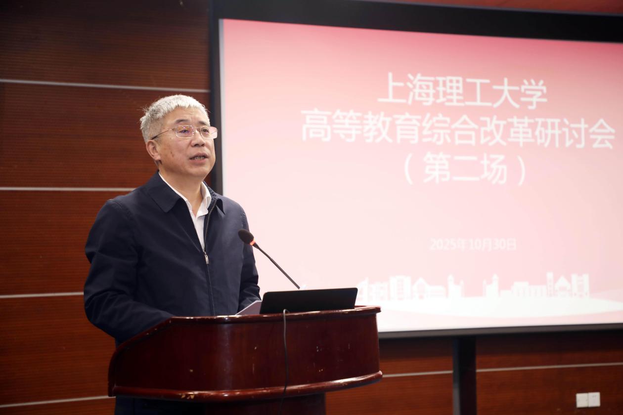 王凌宇主持并讲话。他首先从国家、上海市、学校三个层面分析了教育综合改革的背景。他指出,青年教师是学校事业发展的生力军,要紧紧围绕学校新的办学定位,切实真正理解领会教育综合改革的目标和重点任务。要牢牢把握“重服务、强贡献”价值导向,积极应对新的办学评价方式对学校和教师个人发展带来的机遇和挑战。学校将着力营造良好的制度文化,增强各类工作机制的协同协调,努力营造促进教师分类发展、人尽其才的良好环境。他希望全体青年教师成为学校教育综合改革的先锋力量,始终以改革创新的心态,不断深化产教融合,加强交叉融合;始终以开放合作的心态参与开放办学,争取更多办学资源和支持;始终以共生共荣的心态,努力与改革同向同行、同频共振,确保改革蹄疾步稳、行稳致远。希望全体教师深入推进综合改革落地见效,不断提升人才培养质效和科技创新供给水平,全面提升学校的社会服务贡献力,为加快高水平科技自立自强,推动新质生产力发展做出更大贡献。