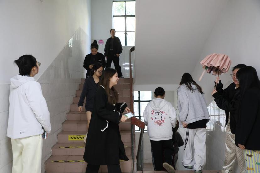 演练前,辅导员通过专项通知明确流程与注意事项。下午两点,三楼模拟起火点启动,无毒电子烟模拟真实烟雾环境,警报声响起。国际学生在引导下沉着有序,沿预定路线通过一楼三个安全出口疏散至室外安全区域。期间,辅导员与物业管理人员按预案逐楼层、逐房间清查,确保全员安全撤离,高效检验了应急反应能力。
