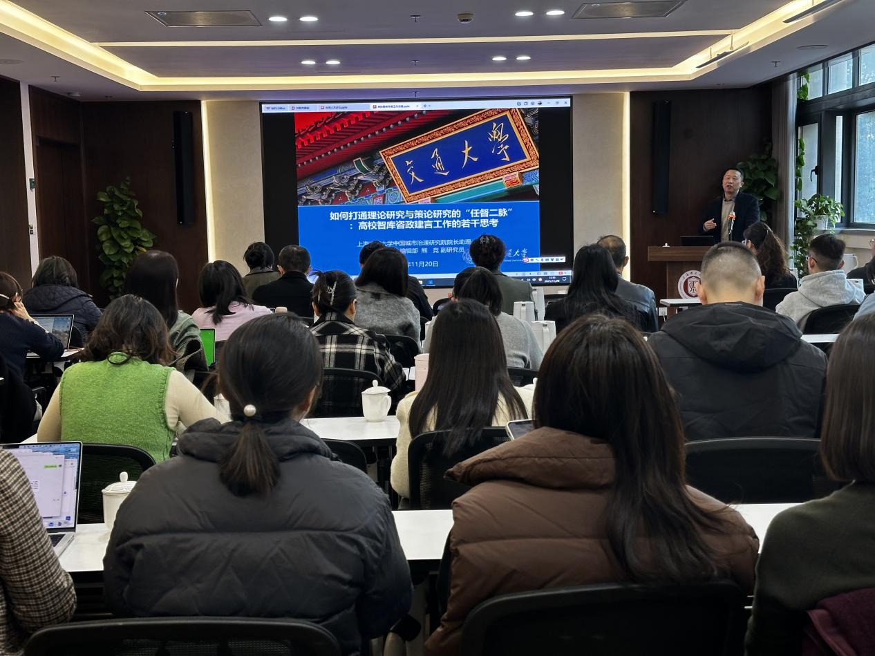 11月19日下午,学校举办智库青年骨干培养、决策咨询能力提升专题培训,本次培训由上海交通大学中国城市治理研究院院长助理、国际与公共事务学院副研究员熊竞主讲。培训由文科办主任牛翔宇主持,来自各学院、科研机构及智库平台的教师和研究人员参加。
