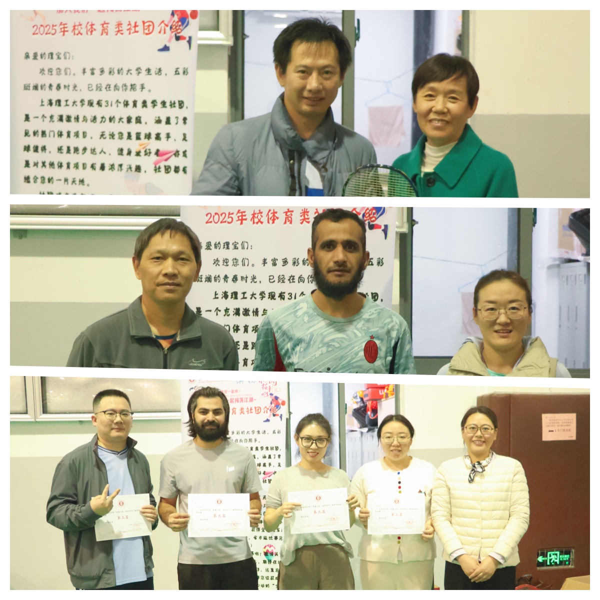 校工会副主席、妇工委专职副主任杨向宁,教职工羽协会长魏国亮以及联谊会负责人于喆共同为获奖选手颁发荣誉证书。此次活动不仅为青年教师们提供了锻炼身体、切磋技艺的优质平台,更以羽毛球为纽带,打破了院系壁垒,增进了跨部门青年教师间的沟通与情谊,为构建和谐温暖的校园文化氛围增添了亮丽色彩。