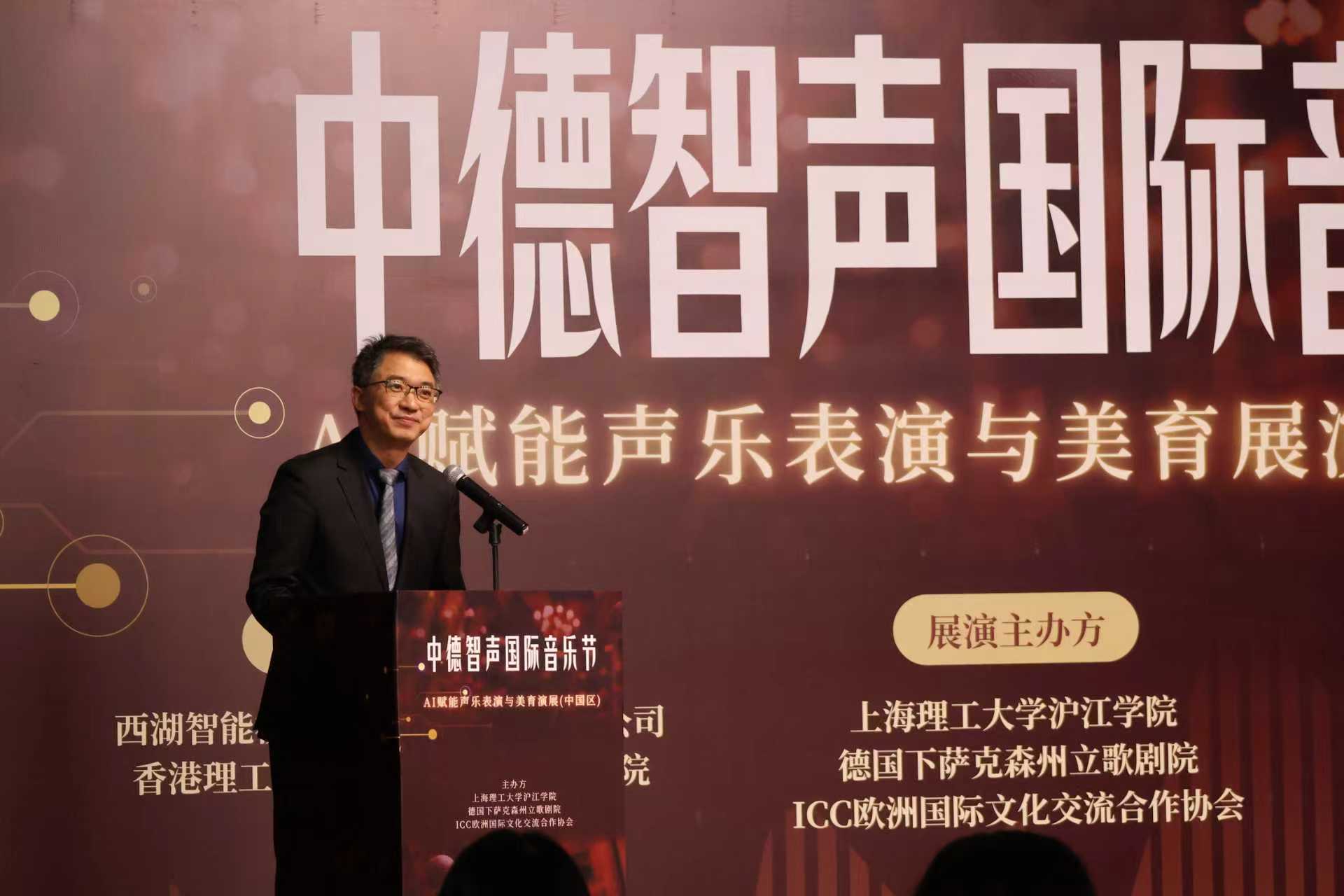 在科艺融合论坛中,上海理工大学光电信息与计算机工程学院院长张大伟、沪江学院朱慧锋副院长、沪江学院音乐系特聘教授侯震一、德国下萨克森州州立歌剧院院长Oliver Graf等中外嘉宾围绕“AI赋能声乐审美、跨文化声乐教育合作、智能评价体系落地”等议题展开交流,为赛事的学术深度与国际视野奠定基调。Oliver Graf强调AI不会取代艺术家,而将成为更科学、更公平的人才培育新工具;中德在深厚声乐传统与人工智能创新上的互补合作,有望共同构建面向未来的国际化青年歌者培养体系。