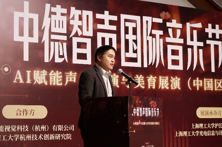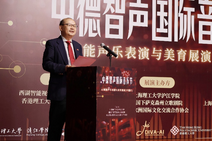 本届音乐节以“科技+艺术+美育”为主线,集中呈现人工智能深度介入声乐美育、赛事评价与美育普及的创新实践。上午9时,开幕式正式启动,由上海理工大学沪江学院副院长朱慧锋和上海理工大学沪江学院音乐系主任李花分别主持,以“以声为媒、以智为翼”的展演愿景,为全场营造出融合艺术与科技的独特气息。上海理工大学校党委常委、宣传部部长李志清出席本次会议。