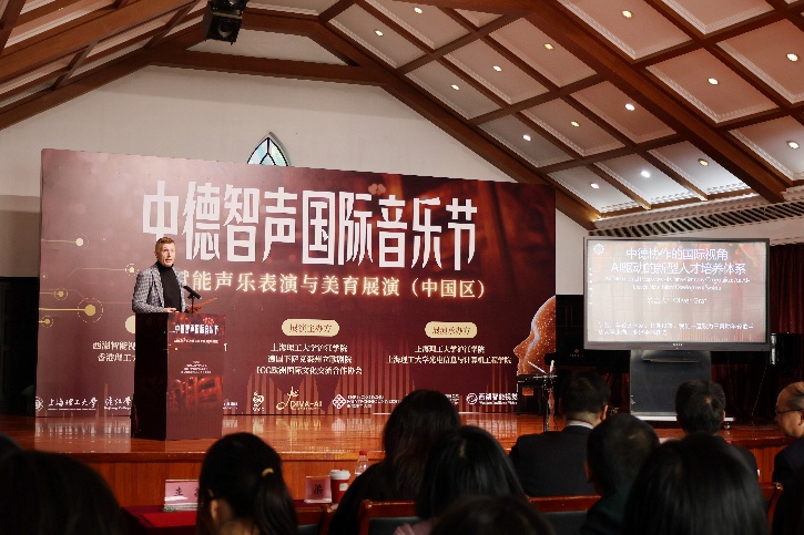 11月22日,2025中德智声国际音乐节复赛(中国区决赛)暨“AI赋能声乐表演与美育展演·学术研讨会”在上海理工大学音乐堂二楼沪江之厅举行。本次活动由上海理工大学沪江学院、德国下萨克森州立歌剧院、ICC欧洲国际文化交流合作协会主办,上海理工大学光电信息与计算机工程学院承办。活动涵盖开幕式、科艺融合论坛及现场复赛与证书颁发等环节,持续一天时间圆满收官。
