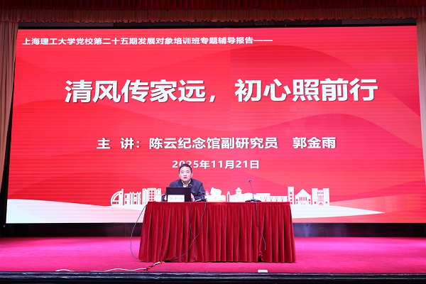陈云纪念馆郭金雨副研究员以“清风传家远,初心照前行——陈云家风的精神传承与时代启示”为题,从家庭“小事”看党性“大事”,以大量鲜活、详实的历史故事生动阐释了陈云同志“心中有党、心中有戒、心中有责、心中有智”的家风准则和“温馨融合、宽松和谐,公私分明、勤俭持家,低调唯实、乐观向上,酷爱学习、孜孜不倦,重情重义、坚持原则”的家风内涵,勉励青年学子传承好家风、践行好初心,在学习生活中始终以陈云家风为镜,努力成为一名信仰坚定的追梦者、遵规守纪的规矩人、担当实干的奋斗者。