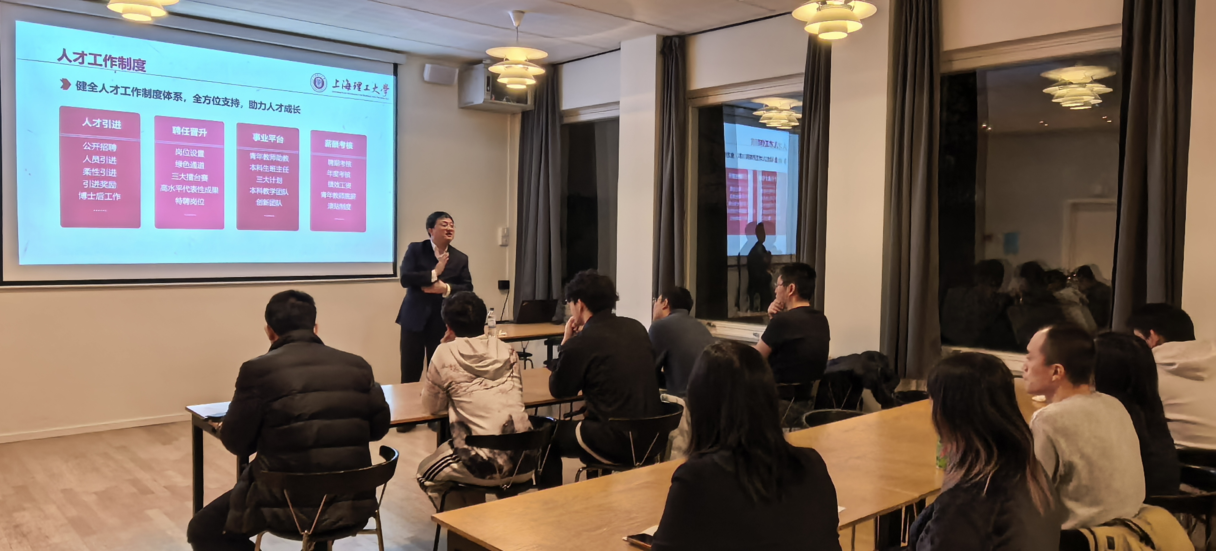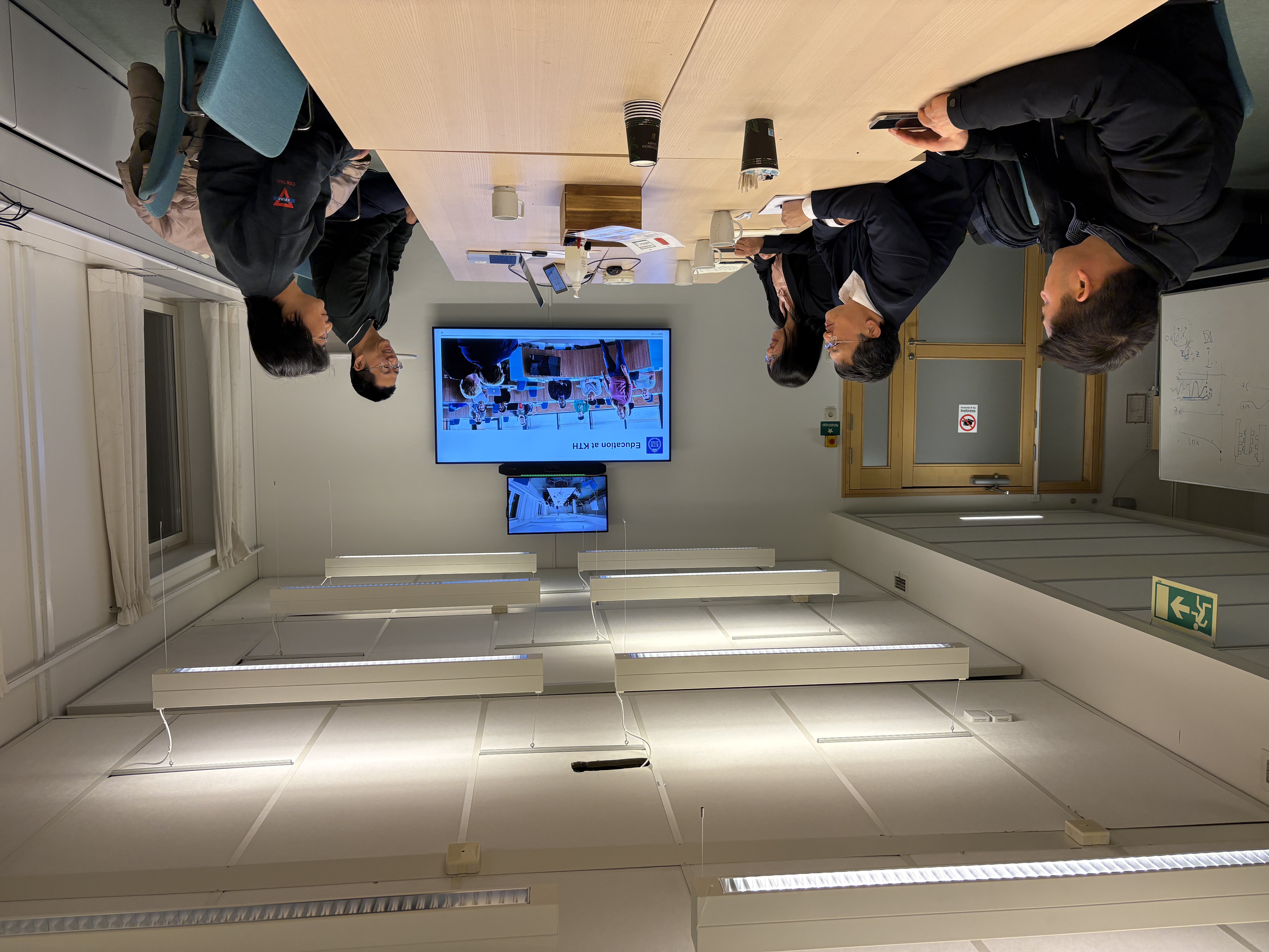 随后,我校代表团一行来到了瑞典皇家理工学院(KTH,Royal Institute of Technology)进行访问交流,与KTH电气工程和计算机科学学院以及工业工程与管理学院的教授们展开交流洽谈。KTH成立于1827年,是瑞典国内规模最大、历史最悠久的理工院校,也是北欧五校联盟(N5T) 的成员之一,2025年QS世界大学排名第74位。代表团还参观了KTH人机系统实验室,这个实验室的研究方向是将前沿的IT技术整合到制造业领域当中,这一研究具有非常重要的意义。双方达成了在教师联合科研、博士生交流以及师生共同体项目等方面的合作共识。我校还在瑞典皇家理工学院举办了一场海外高端人才引进专场宣讲会,张众向KTH的博士和博士后详细地介绍了上海理工大学人才引进的相关政策,包括人才工作制度、人才服务保障等内容,鼓励青年学者回国发展,为祖国的建设贡献自己的一份力量。